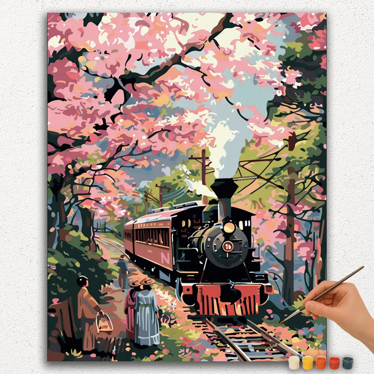 Transformeer je ruimte met onze betoverende Bloemen en Trein DIY Schilderpakket. Deze heerlijke schilderen-op-nummer set toont een charmant tafereel van bloeiende bloemen naast een vintage trein, wat een perfecte mix van natuur en nostalgie creëert.