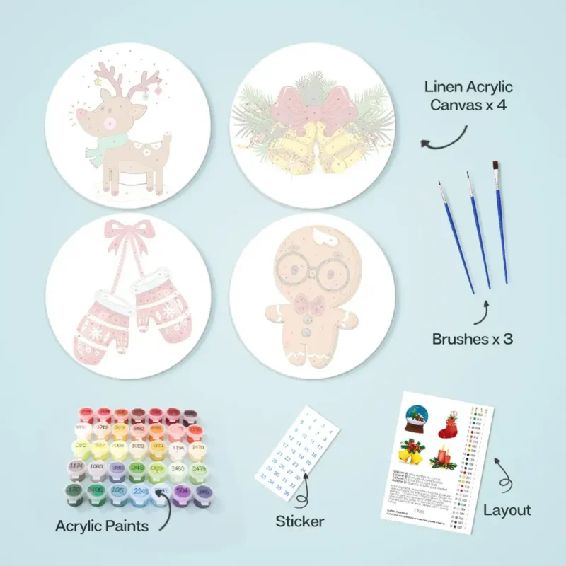Je ontvangt alle benodigde accessoires om je DIY placematproject te voltooien. Je krijgt de onderstaande items.- Linnen acryl canvas (set van 4)