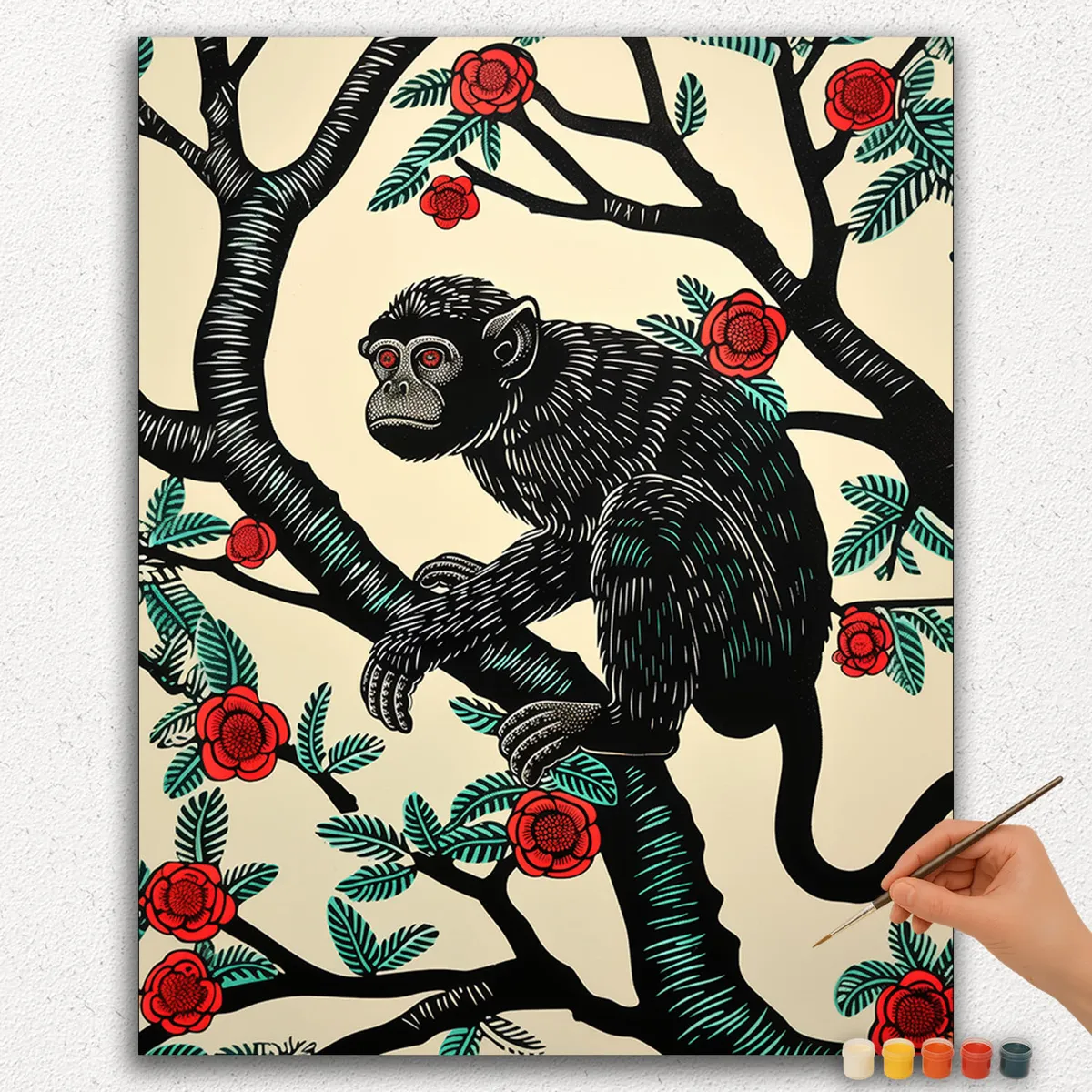 Laat je innerlijke kunstenaar los met De Zwarte Aap Schilderij op Nummer kit. Deze fascinerende set tovert een leeg canvas om in een prachtig meesterwerk van een majestueuze zwarte aap. De kit bevat een voorgenummerd canvas, acrylverf en penselen.