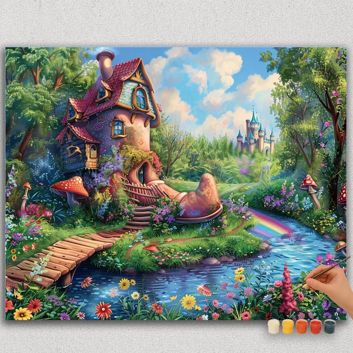 Transformeer je leefruimte met “Huisje in de Natuur”, een DIY schilderset die de schoonheid van de natuur naar binnen haalt. Deze ontspannende schilderen-op-nummers set toont een sereen huisje genesteld tussen bomen en bloemen.