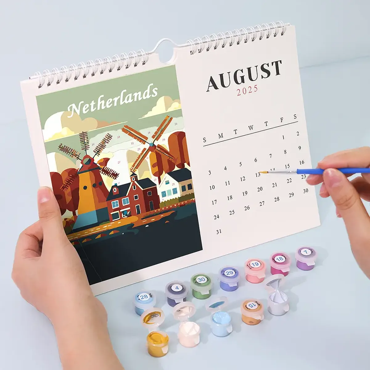 Je ontvangt alle benodigde accessoires om je ‘schilderen op nummer’ kalender te voltooien. Je krijgt de volgende hulpmiddelen en accessoires –- 12-Maanden Kalenderkaarten