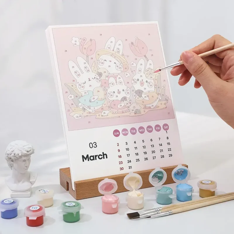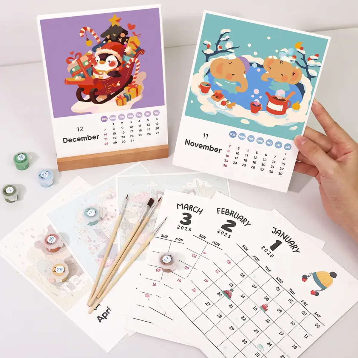 U krijgt alle benodigde accessoires om uw schilderen op nummer kalender compleet te maken. U krijgt de volgende tools en accessoires –- 12-maanden kalenderkaarten