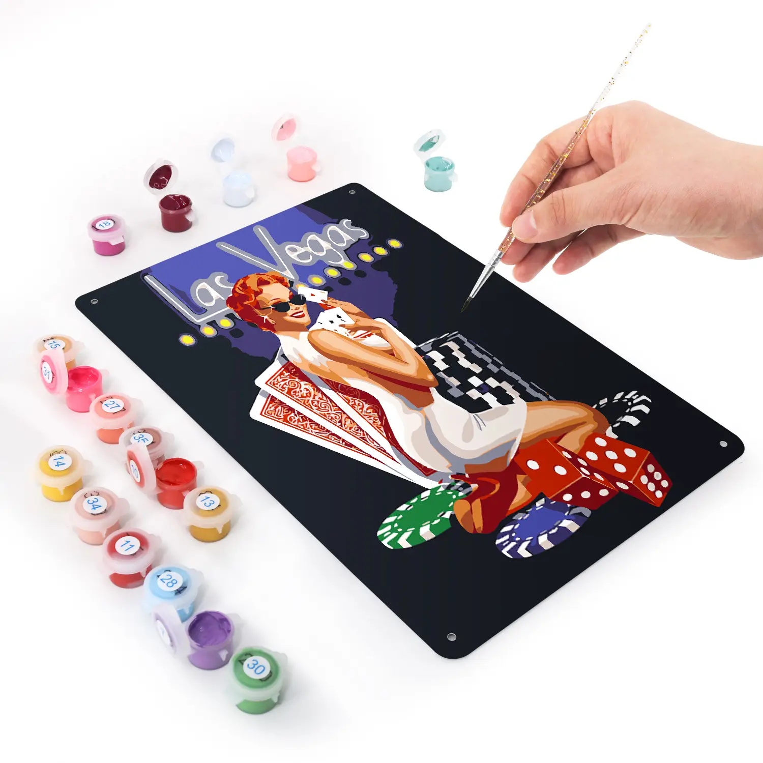 Breng de levendige sfeer van Las Vegas naar je bar of huis met onze unieke DIY schilderen-op-nummer metalen poster. Met een afmeting van 20x30cm (7.8×11.8 inches) heeft deze vintage-stijl poster afgeronde hoeken voor een strakke afwerking. Perfect om een vleugje nostalgie en creativiteit toe te voegen aan je ruimte; deze metalen poster is ontworpen om zowel decoratief als leuk te zijn. Schilderen op nummer om deze iconische scène tot leven te brengen, en zo een gepersonaliseerd kunstwerk te creëren dat jouw stijl weerspiegelt.