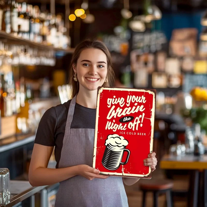 Verrijk je bar of interieur met de Night Off Bar Metalen Poster. Deze poster in vintage-stijl meet 20x30cm en heeft afgeronde hoeken voor een strakke uitstraling. Gemaakt van duurzaam metaal, voegt het een vleugje nostalgie en verfijning toe aan elke kamer. Perfect voor liefhebbers van retro-esthetiek, deze poster zal zeker gesprekken uitlokken en een unieke sfeer creëren.