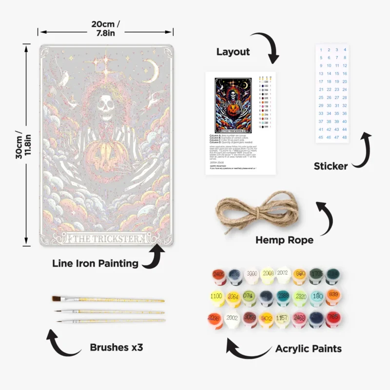 De Trickster DIY Metalen Poster is een uniek, vintage-geïnspireerd stuk perfect om een vleugje mystiek toe te voegen aan je huis- of bardecoratie. Met afmetingen van 20x30cm of 7.8×11.8 inch, heeft deze poster afgeronde hoeken en randen, wat zorgt voor een gladde, moderne afwerking. Het schilderen-op-nummer ontwerp stelt je in staat je creativiteit de vrije loop te laten, en het te transformeren in een gepersonaliseerd kunstwerk. Het compacte formaat maakt het ideaal voor kleine ruimtes, terwijl de vintage stijl een nostalgische charme toevoegt aan elke kamer.