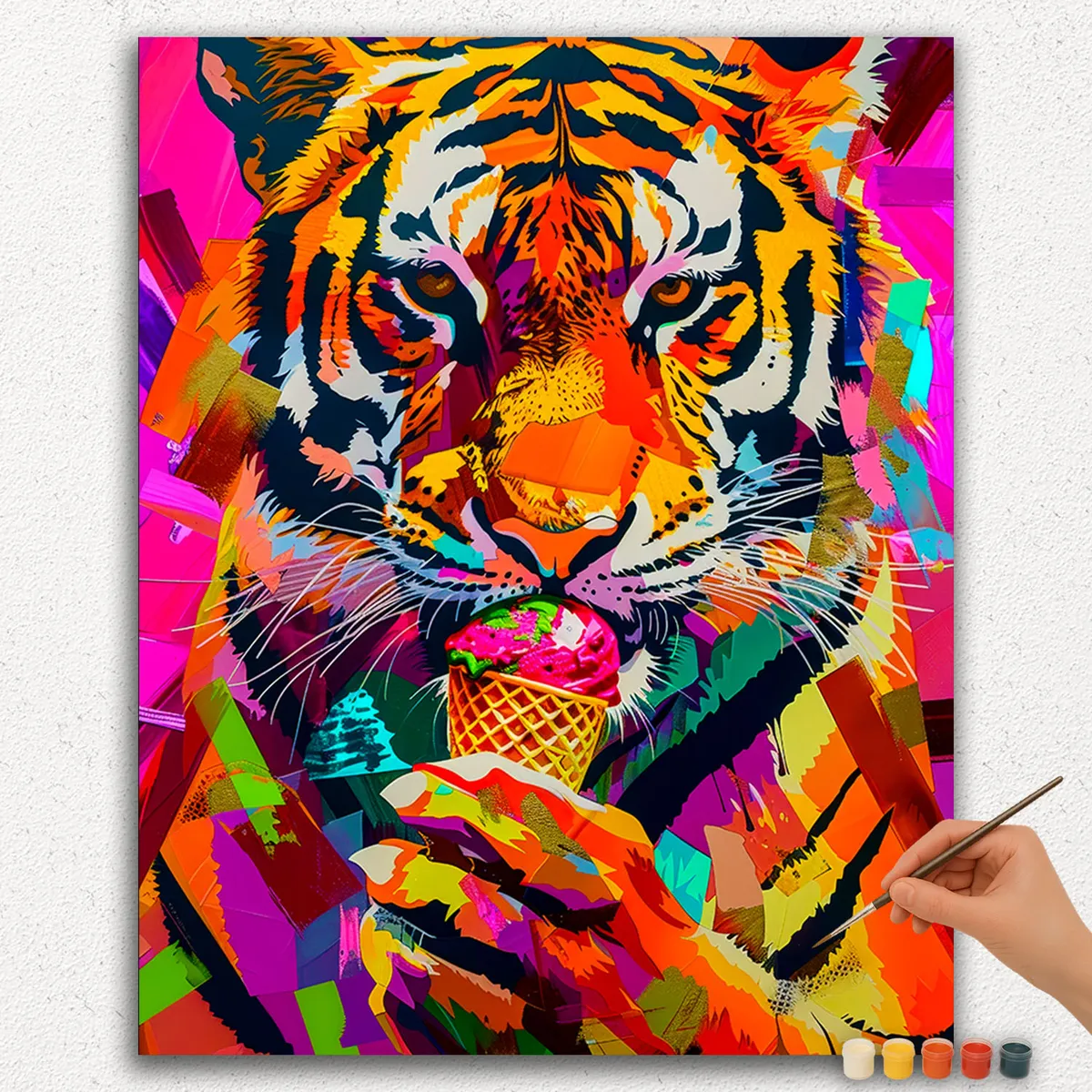 Breng een speelse scène tot leven met dit charmante Schilderen op Nummer-pakket, waarop een tijger geniet van een ijsje. Perfect voor zowel beginners als ervaren artiesten, met deze set creëer je een leuk en uniek kunstwerk.